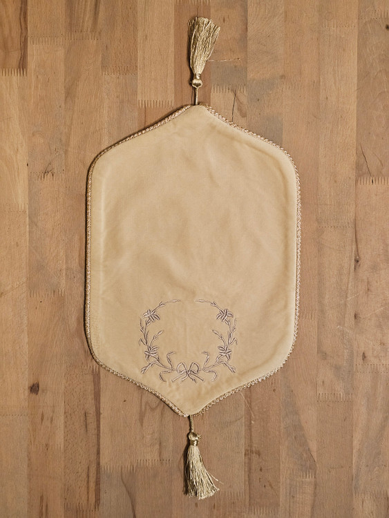 عسلی طرح حلقه گل گزینهای لوکس و لاکچری برای زیباتر شدن دکور شما خواهد بود. این آیتم با استفاده از مرغوبترین پارچه مخمل کالیفرنیا تهیه شده است.پشت کار دارای استر کشی با پارچه ساتن درجه یک است که ضمن زیبایی و ظرافت بیشتر این امکان را به شما میدهد تا به راحتی آن را بشویید. گلدوزی متراکم و منسجم با نخ ابریشم .دارای مغزی گلابتون که زیبایی عسلی رو دو چندان میکند.