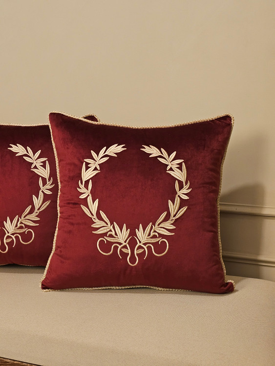 کوسن گلدوزی زیتون زرشکی