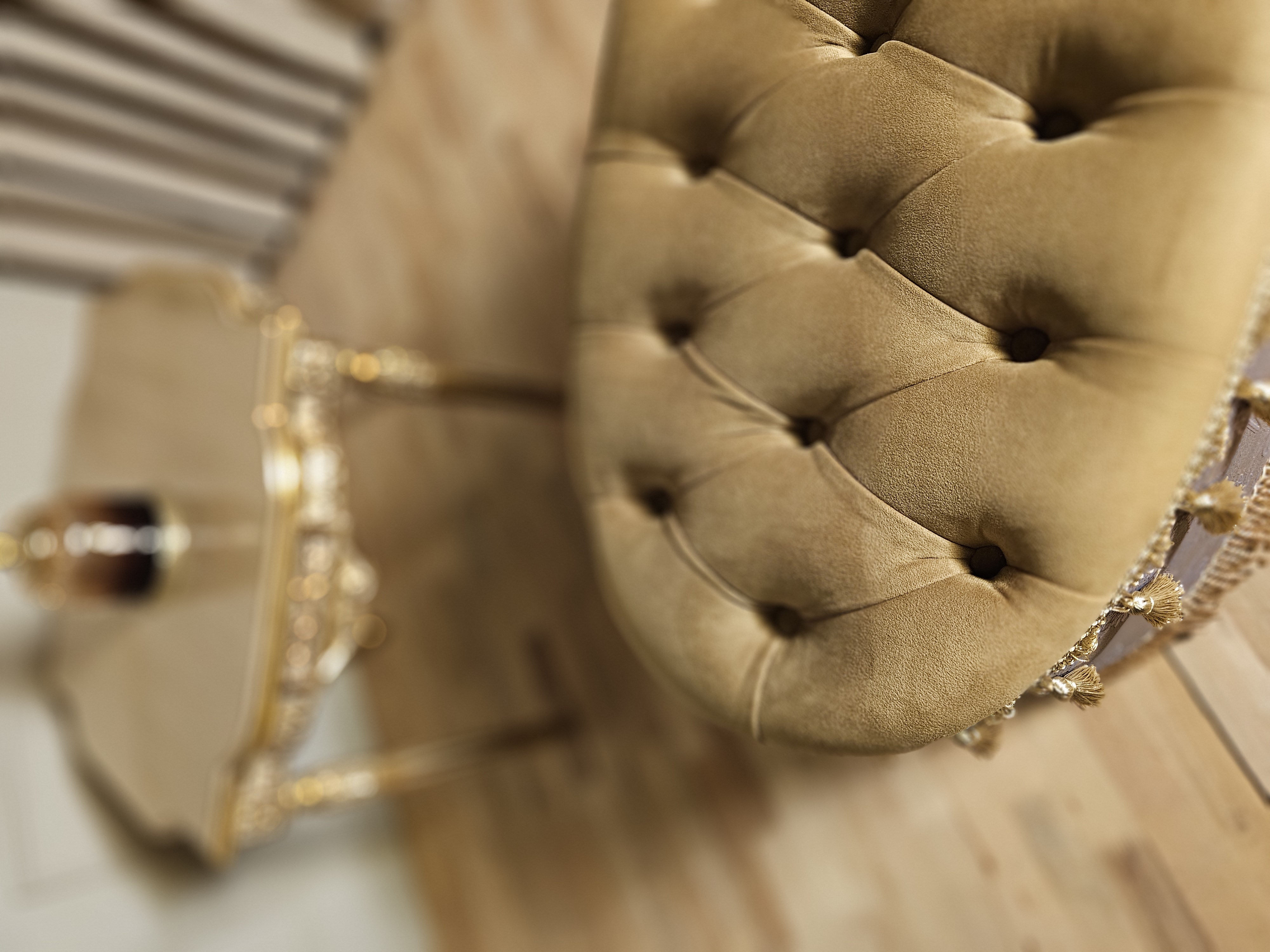 جنس پارچه صفحه بیضی مخمل جنس پارچه بدنه ساتن سیلک ایتالیایی لمسه کاری منظم جنس بدنه چوب دارای ریشه ماکارونی و منگوله ای صفحه بیضی به ابعاد ۴۰×۷۰ سانتی متر ارتفاع ۴۲ سانتی متر